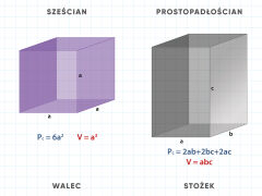 Ścienna plansza szkolna do matematyki przedstawiająca podstawowe bryły obrotowe, graniastosłupy proste oraz ostrosłupy. W czytelny i przyjazny dla ucznia sposób pozwala objaśnić zasady obliczania pól powierzchni i objętości wielościanów oraz brył obrotowych.