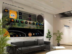 Ścienna plansza szkolna przedstawiająca Układ Słoneczny, planety, strukturę i odległości między nimi. Każda z planet pokazana jest na ilustracji, opatrzona opisem oraz krótką charakterystyką. Dodatkowo prezentuje obraz nieba północnego, obiekty występujące na naszym niebie oraz porównanie wielkości poszczególnych ciał niebieskich Układu Słonecznego.