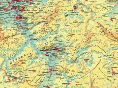 Ścienna mapa szkolna przedstawiająca kraje niemieckojęzyczne, Niemcy, Austrię, Szwajcarię i Liechtenstein oraz ich ukształtowanie powierzchni i krainy geograficzne. Dodatkowo w kartonach bocznych znajdują się podstawowe informacje dotyczące geografii poszczególnych krajów.
