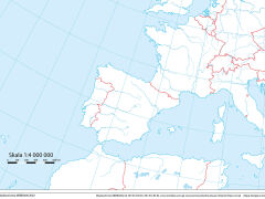 Ćwiczeniowa mapa szkolna przedstawiająca konturowe obrysy granic administracyjnych państw oraz sieć hydrograficzną Europy. Jedna z podstawowych map na wyposażeniu każdej pracowni geograficznej.